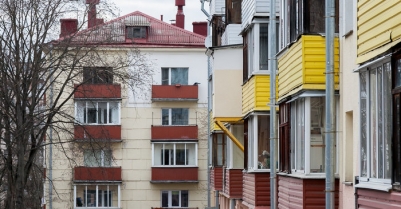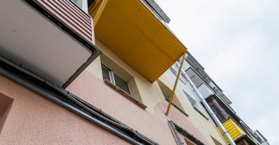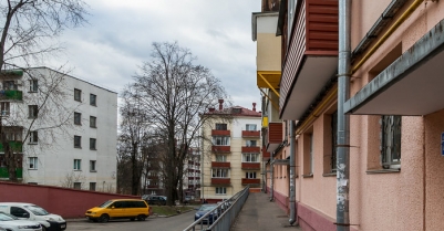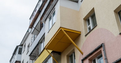 Самострой реализован в «хрущевке» на улице Гикало. Судя по фасаду, квартиру на третьем этаже расширили еще до капитального ремонта — «скворечник» покрашен в тон дома, под термошубой сложно определить его конструктив. Любопытно, что пристройка выступает не только за пределы квартиры, но и балконов.