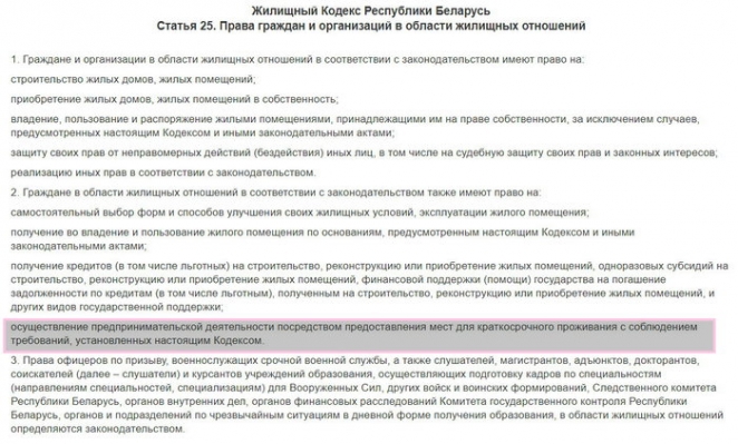 — В ст. 1 п. 46 нового Жилищного кодекса указано, что физические лица могут сдавать свои жилые помещения в аренду на короткий срок (до 15 дней) неограниченное количество раз в году. Это не будет считаться предпринимательской деятельностью (вывод подтверждается в т. ч. абз. 33 ч. 4 п. 1 ст. 1 Гражданского кодекса). Из ст. 25 указание на предпринимательскую деятельность убрано именно потому, что такая деятельность не будет считаться предпринимательской (то есть это не запрет сдавать квартиры на, скажем, airbnb, а наоборот).