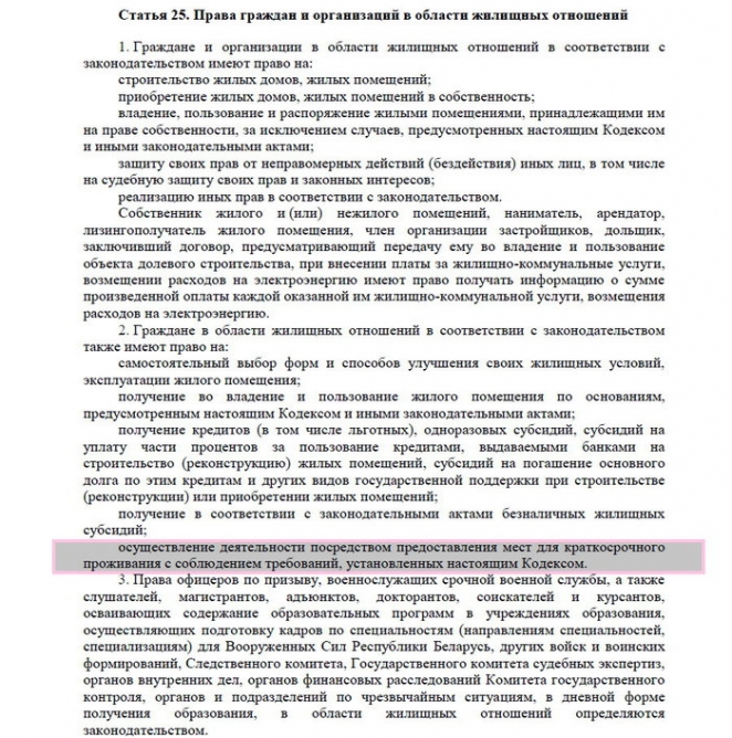 Виктор обратил внимание на исчезновение пары очень важных слов из статьи 25 нового ЖК. Дело в том, что раньше в кодексе гражданам и организациям разрешалось «осуществление предпринимательской деятельности посредством предоставления мест для краткосрочного проживания с соблюдением требований, установленных настоящим Кодексом». В новом же Кодексе «предпринимательская деятельность» исчезла.