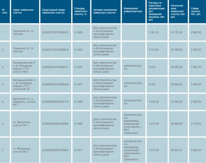 Хатежинский сельсовет предложил на аукцион пять лотов с начальной ценой 20−35 тысяч рублей.