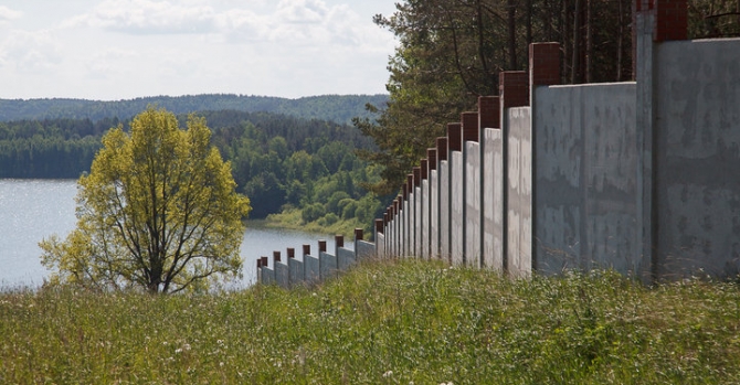 Ограждение участка, который находится в собственности Катара. Фото: Ольга Шукайло, TUT.BY