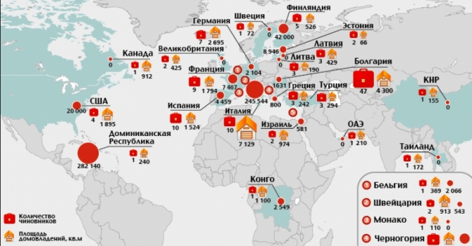 В Западной Европе должностные лица предпочитают Испанию, Германию и Францию, отмечает координатор проекта «Декларатор» Андрей Жвирблис: «Собственность в странах ближнего зарубежья объясняется очень просто: люди наследуют какую-то недвижимость. Если мы исключим бывшие республики Советского Союза, то в лидеры выходят Испания и Болгария. Эти страны популярны для вложения денег. Логично, что в высшем эшелоне, тем более что там представлены не только госслужащие, но и депутаты, среди которых есть очень обеспеченные люди, берут в собственности жилье в каких-то дорогих странах».