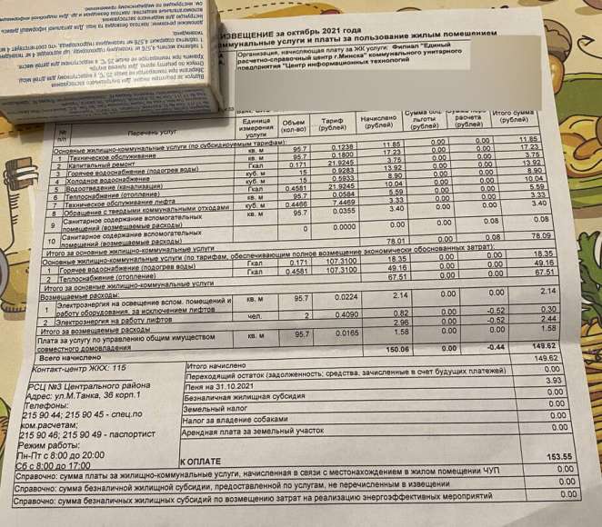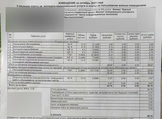 «В нашей семье три человека — мы с женой и ребенок, которому еще нет и трех лет, — рассказывает Игорь из Минска. — Я больше полугода не могу найти работу, жена воспитывает маленького ребенка. Недавно мы получили жировку за октябрь. И по ней нам придется заплатить 120 рублей, в то время, как в сентябре жировка была всего на 60 рублей».