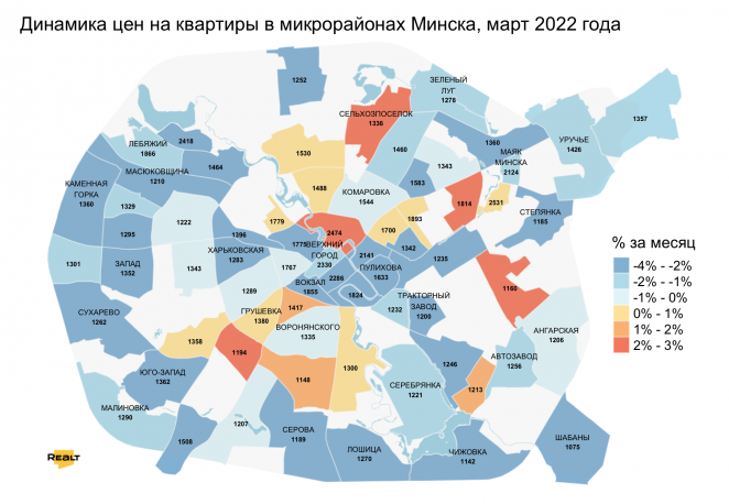 По итогам марта различия между микрорайонами столицы выглядели следующим образом: