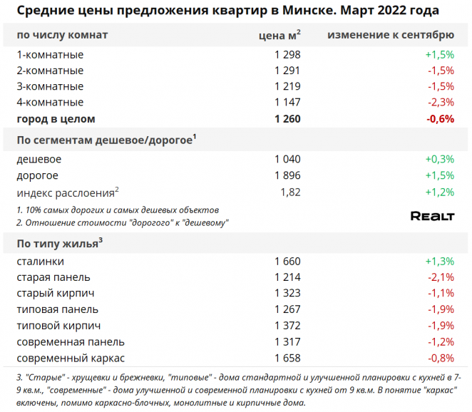 4-комнатные квартиры — 1216 $/м2 (-2.6%).