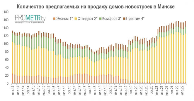 За последние три года количество предложений в новостройках Минска (без учета комплексов, доступных только для нуждающихся в улучшении жилищных условий) увеличилось более чем на 60%. По сравнению с летом последнего стабильного и спокойного 2019 года объемы выросли с 96 до 157 домов. Причем последняя цифра является для Минска абсолютным рекордом. В первую очередь это связано со стремительно разрастающимся «Минск-Миром».