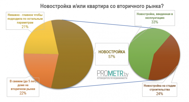 Но время шло, и вместе с укрепившимся белорусским рублем опасения покупателей стали ослабевать, а интерес к новостройкам — возвращаться. В каком объеме? Это наглядно можно увидеть по результатам проведенного информационным порталом «Путеводитель по новостройкам Минска» опроса покупательских предпочтений.