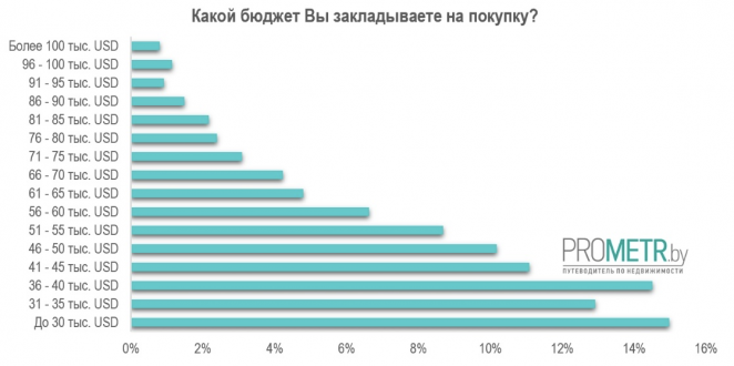 Более половины респондентов (53%) располагают бюджетом до $45 000, что не всегда позволяет приобрести даже однушку. Как раз для таких покупателей выступают реальной помощью кредитование и рассрочка оплаты. Причем рассрочка является конкурентным преимуществом первичного рынка — ее предоставляют застройщики. Присматриваясь ко вторичке, можно рассчитывать только на кредитование — на сегодняшний день его предлагают только «Беларусбанк» и «Белинвестбанк», а процентная ставка стартует от 22,91%.