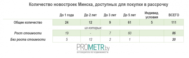 Сейчас рассрочка по оплате предоставляется в 111 новостройках из 157 находящихся в продаже. Минимальный первоначальный взнос составляет 30% от стоимости квартиры, хотя в прошлом году он был на уровне 10%.