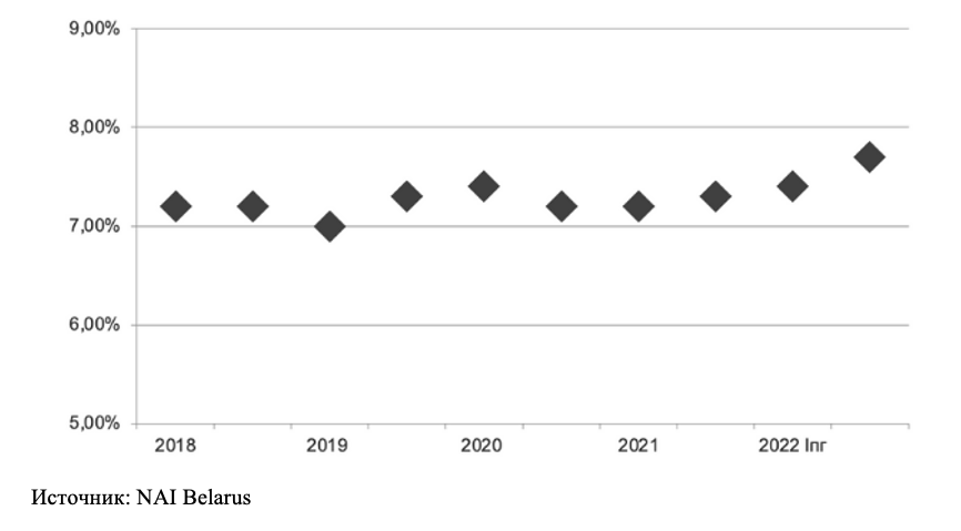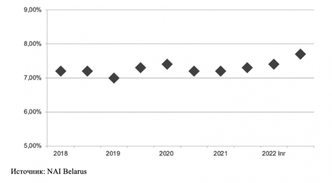 В I полугодии 2022 года заметного роста вакантности не произошло, поскольку существует умеренный спрос на торговые площади, а отказ от аренды в период марта-апреля не носил массового характера, как это было характерно для рынка России. Ряд международных брендов, которые прекратили (приостановили) деятельность в России, не ушли с белорусского рынка. И непосредственно представительство мировых брендов на нашем рынке более скромное.