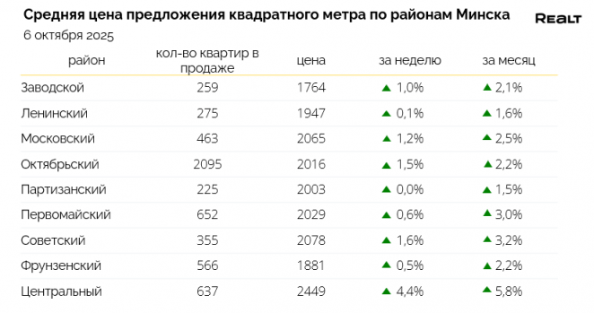 В то же время среди районов города динамика была также положительной. На прошлой неделе наблюдалось наибольшее повышение стоимости только в Советском районе — плюс 1.6%.
