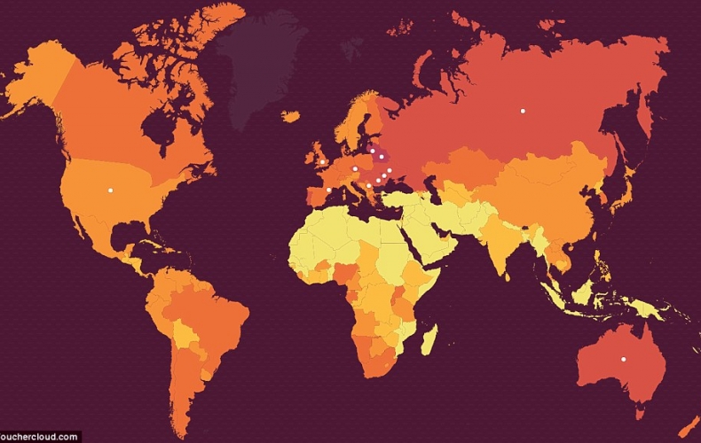 Более темным цветом окрашены более пьющие страны. Инфографика: Daily Mail