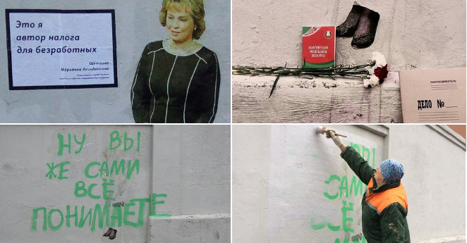 Утром в воскресенье, 5 марта, популярный блогер и фотограф Антон Мотолько выложил в соцсети фото граффити с министром труда и соцзащиты Марианной Щеткиной, на котором чиновнице приписали авторство «налога на тунеядство» (отметим, что на самом деле автор идеи — другой чиновник, Михаил Мясникович, который наверняка обиделся за непроставленный копирайт).