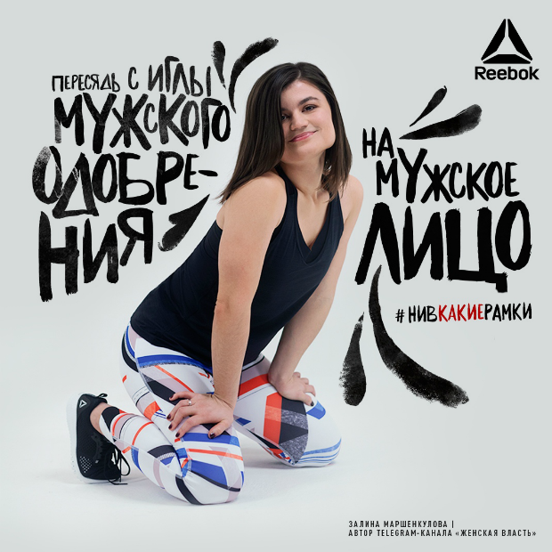 Как выглядит рекламная кампания Reebok в России: "Пересядь на мужское лицо". pic.twitter.com/vdtzJ6c1Hp