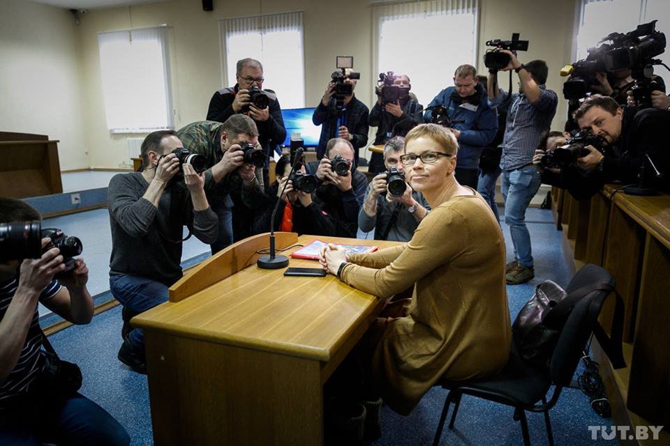 Марина Золотова спрашивает главу БелТА: «Не кажется ли вам, что информация о работе госорганов не может публиковаться в закрытой подписке за деньги?» Судья устраняет вопрос как не относящийся к обвинению.#делоЗолотовой