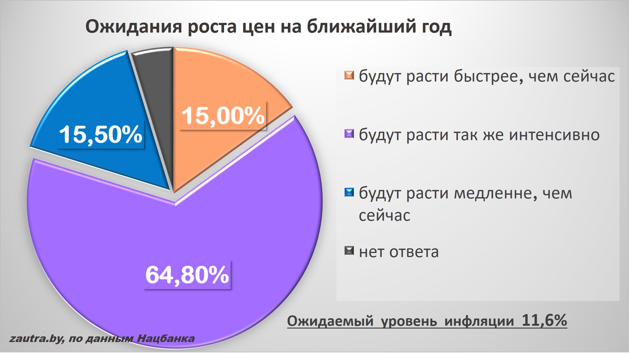 В ближайший год белорусы ожидают, что инфляция вырастет еще на 11,6%. А финансовые власти прогнозируют ее не выше 5%.
