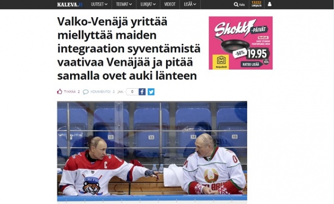 В марте kaleva.fi опубликовал статью под заголовком «Беларусь пытается угодить России, которая призывает к более глубокой интеграции, и держит двери открытыми для Запада». В тексте обращается внимание на заявление Лукашенко о том, что практически все белорусы проголосовали бы против присоединения к России.