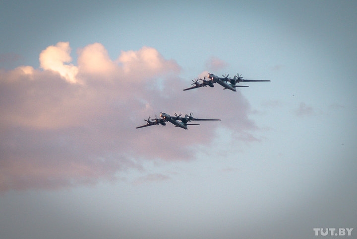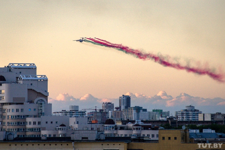 Открывает парад авиация. В небе над столицей — вертолеты Ми-8МТВ5 и Ми-24, учебно-боевые самолеты Л-39 и Як-130, штурмовики Су-25, истребители МиГ-29 и военно-транспортные самолеты Ил-76 и Ан-26. Максимальная высота, на которой проходят самолеты — около 250 метров.
