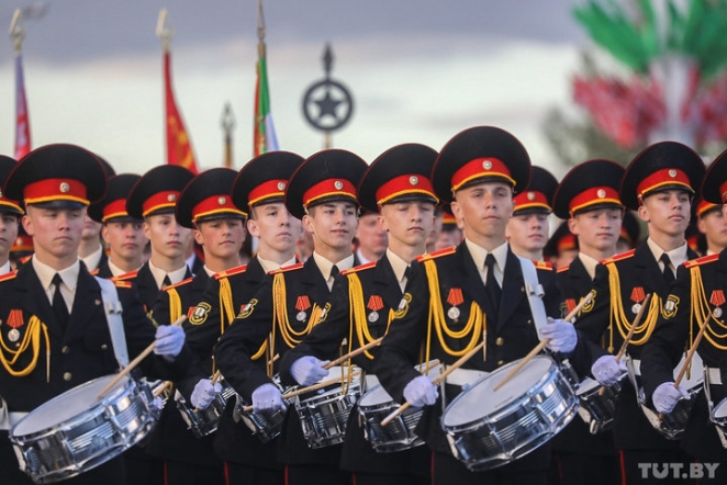 Шествие открыли барабанщики Минского суворовского училища.