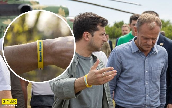 На некоторых совещаниях Зеленский также был с желтыми браслетами, на которых, как выяснилось, написаны имена захваченных Россией украинских моряков.