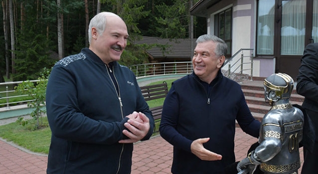 Шавкат Мирзиёев делает подарок Александру Лукашенко. Источник: president.gov.by