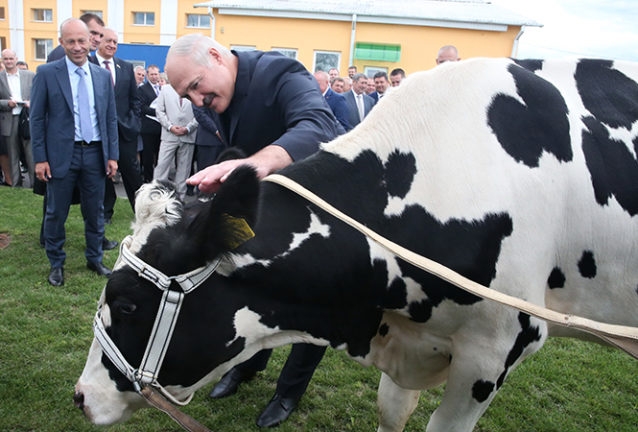 Лукашенко и корова, 2016 год. Фото: president.gov.by