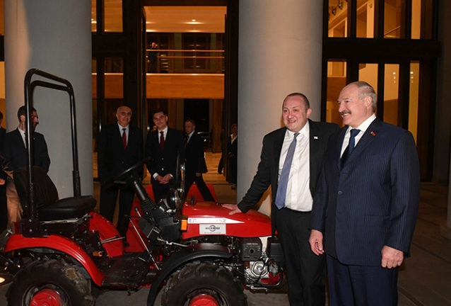 Кроме еды и алкоголя Лукашенко любит дарить сельскохозяйственную технику. Например, в прошлом году в марте он подарил белорусский малогабаритный трактор президенту Грузии Георгию Маргвелашвили, ведь грузинский политик в свободное от работы время занимается фермерством на приусадебном участке.