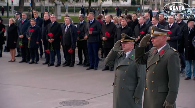 Младший сын главы государства Николай Лукашенко отправился вместе с отцом в Австрию. Его можно увидеть на видео во время возложения венка к памятнику советским воинам-освободителям в Вене.