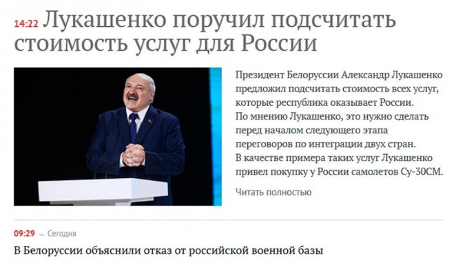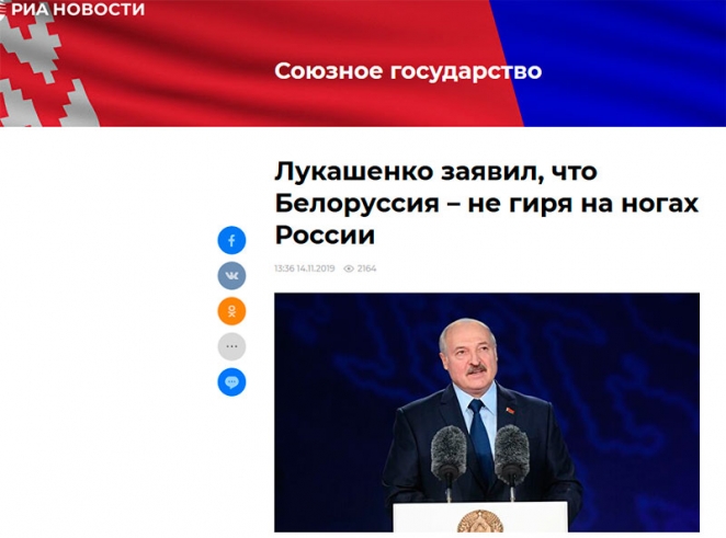 Статья агентства РИА Новости вышла под заголовком «Лукашенко заявил, что Белоруссия – не гиря на ногах России». Некоторые из читателей внесли свои коррективы в слова главы Беларуси: «Нет, не гиря на ногах, а балласт. Неправильно выразился, но суть одинакова».
