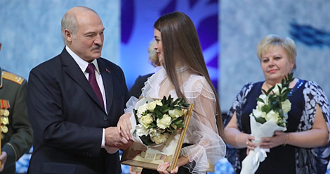 Александр Лукашенко вручает специальную премию президента Беларуси обладательнице титулов "Мисс Беларусь-2018" и "Мисс мира Европа" Марии Василевич 9 января 2019 года. Фото: belarus.by