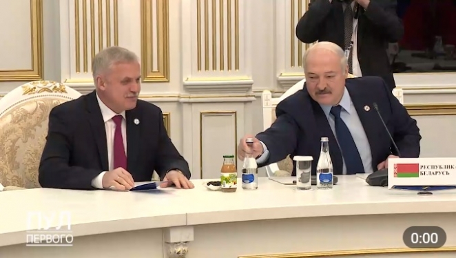 На встречу президентов за закрытыми дверьми в последний момент решили позвать Станислава Зася, который станет новым генеральным секретарем ОДКБ с 1 января следующего года. Поэтому отдельное место для него не было оборудовано. Лукашенко не только усадил госсекретаря Совбеза Беларуси рядом с собой, но и поделился своим набором бутылочек – передвинул чиновнику сок и воду.