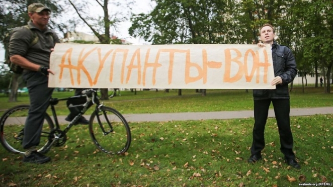 В 2002 году новый президент России Владимир Путин впервые обозначил свою жесткую позицию, предложив, по сути, войти Беларуси в состав своей страны. В ответ активисты «Молодого фронта» пришли к посольству РФ с пикетом, во время которого держали в руках антиинтеграционные лозунги и сжигали российские рубли.
