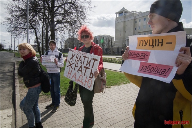 Акция у российского посольства состоялась через несколько месяцев после президентских выборов-2006 и разгона Площади. Около 70 человек пришли протестовать против действий Москвы по поддержке Лукашенко.