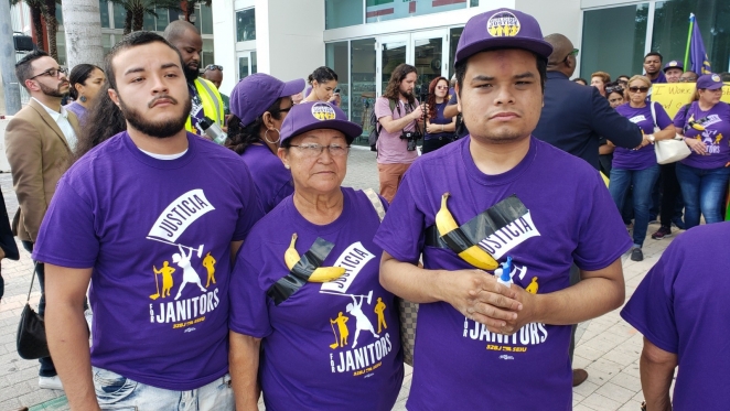 В Майами уборщики вышли на улицы в знак протеста против низких зарплат.