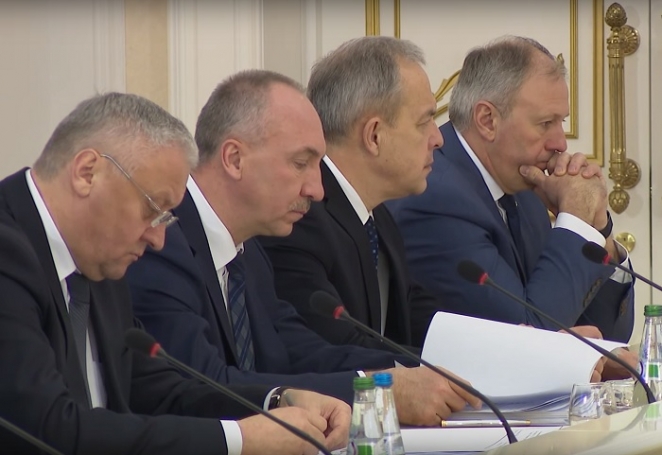 Все эти действия Лукашенко, пожалуй, стали сюрпризом для остальных чиновников. Главный человек в правительстве, премьер Сергей Румас, сидел на совещании с отсутствующим взглядом.