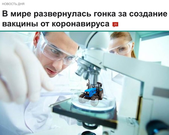 Лукашенко заявил, что лечить коронавирус нужно трактором. Белорусские учёные не остались в стороне! Коллаж и цитата в заголовке (найдена в комментариях): "Чай з малинавым варэннем"