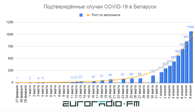 График роста числа инфицированных в Беларуси на 8 апреля