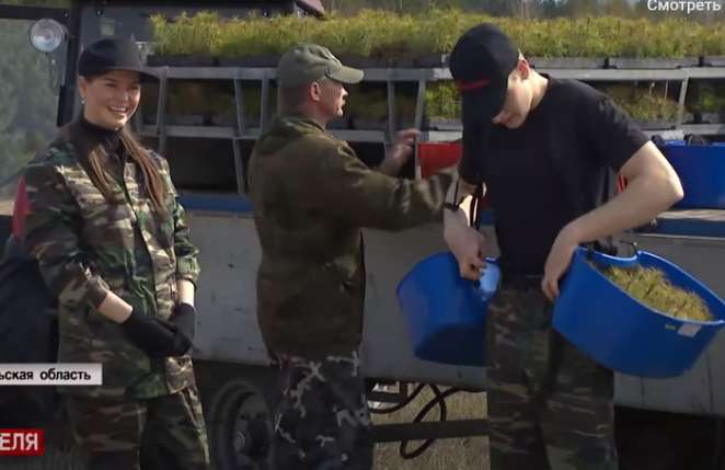 Младший сын руководителя страны работал в первом ряду вместе с отцом. И нарвался на его замечание. Лукашенко заметил, что между саженцами не соблюдается нужная дистанция, на что и указал сыну.