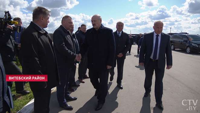 Во время прибытия Лукашенко в Витебский район наблюдалась сюрреалистичная картинка. Президентский вертолет приземлился у частного подворья, с кирпичным домом, сараем и уборной. Затем кортеж, состоящих из дорогих автомобилей, промчался по пыльной дороге.