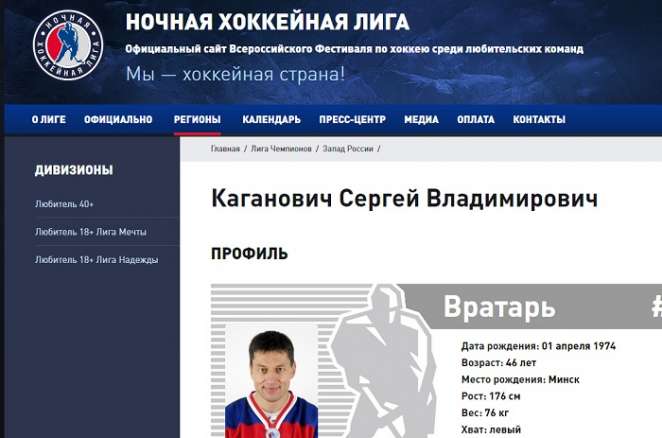 Однако интересно, что Сергей Каганович выступал и в российской «Ночной хоккейной лиге» – за команду «Запад России» из Калининграда. Из чего можно сделать вывод, что у него там хорошие знакомства или бизнес-интересы.