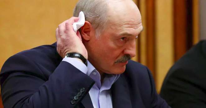 Александр Григорьевич Лукашенко протирает голову стопкой салфеток