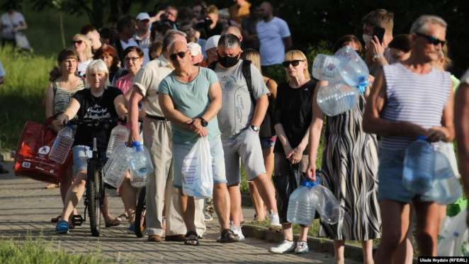 Минчане стоят в очереди за чистой водой, 24 июня. Фото: Минск-новости