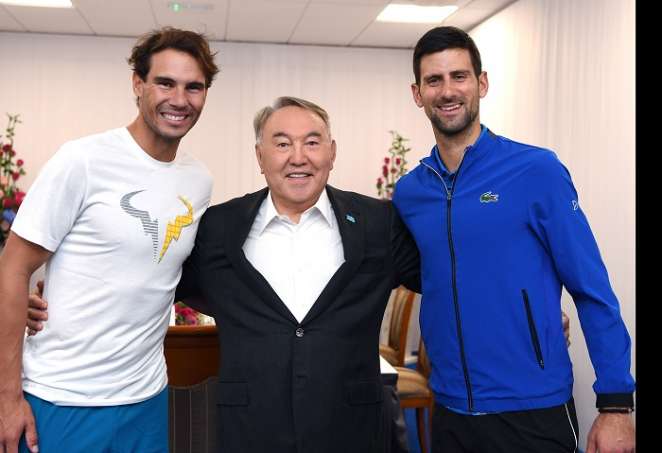 На благотворительном теннисном матче между Новаком Джоковичем и Рафаэлем Надалем. Фото: elbasy.kz
