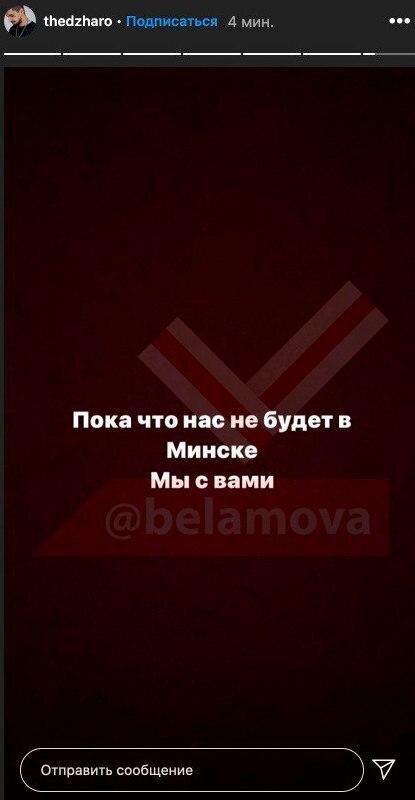 Джаро и Ханза также написали в инстаграме, что не приедут на концерт в Минск 8 августа.