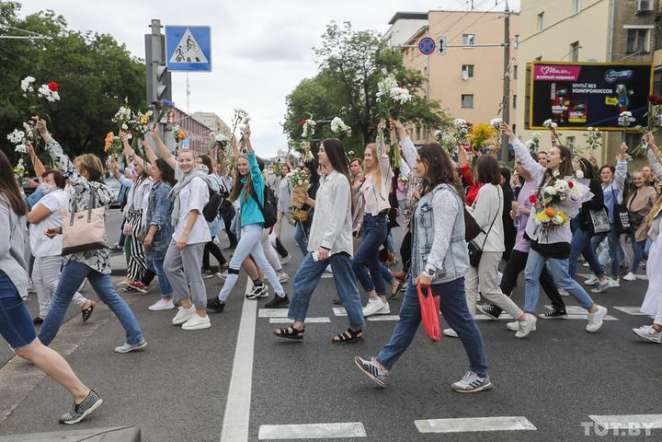 По всей по всей Беларуси женщины выходят на улицы в знак протеста жестокости силовиков - онлайн