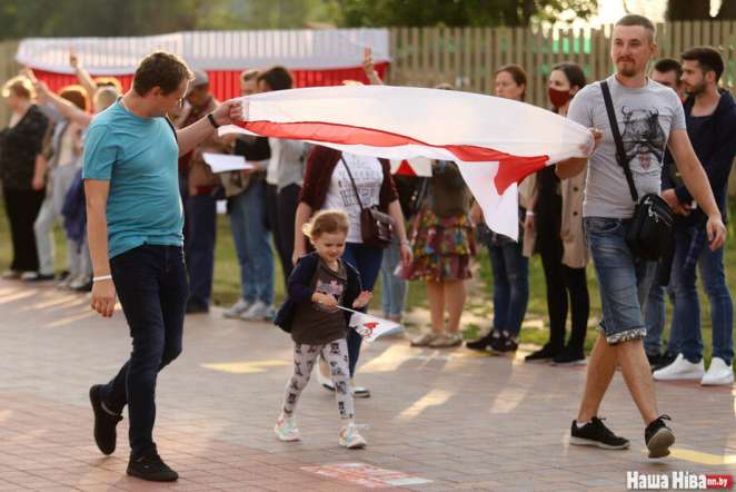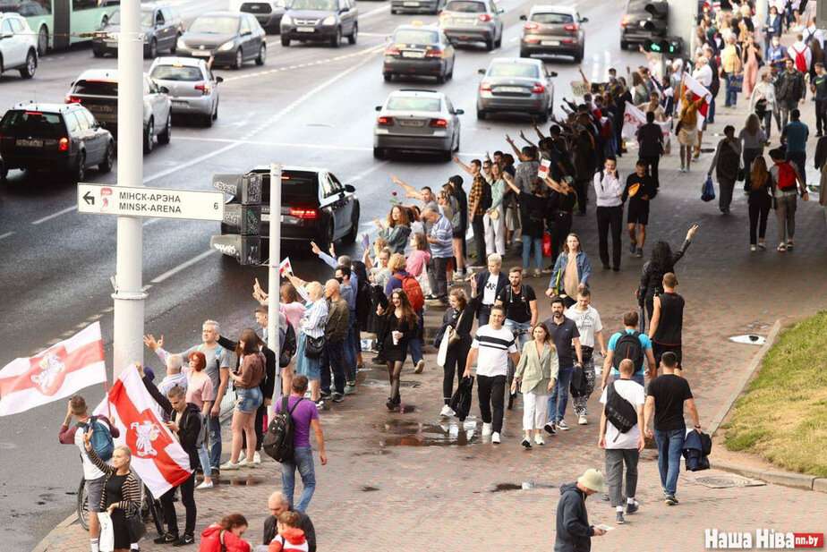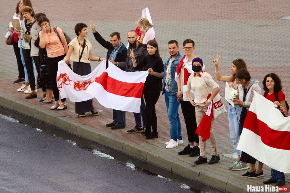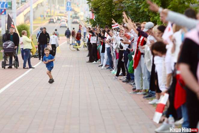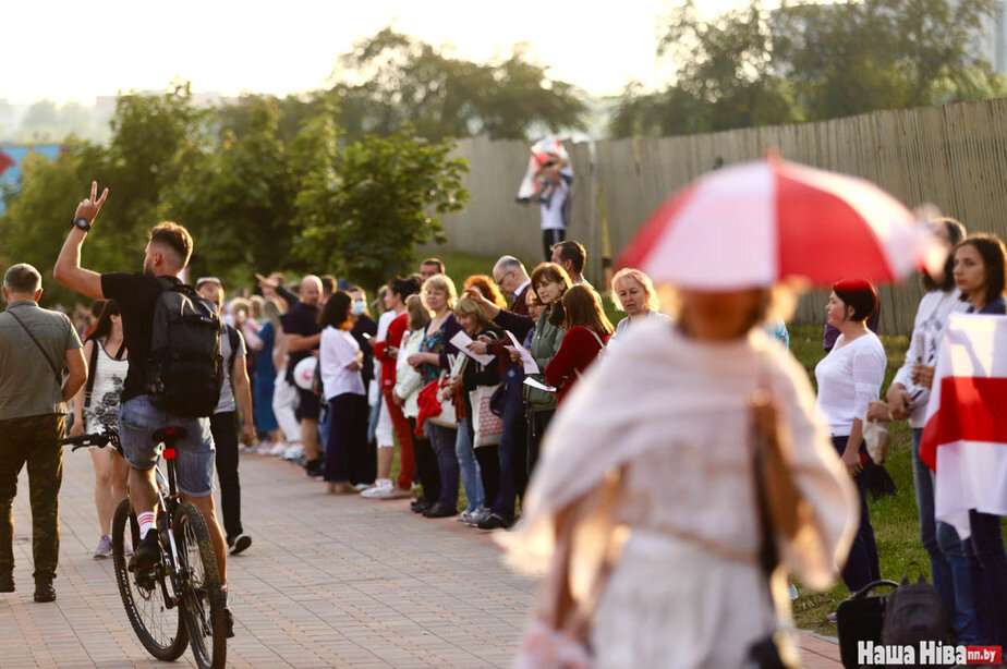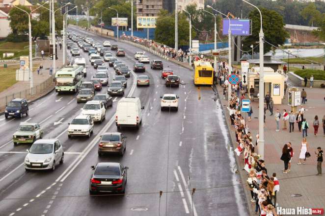 Люди становятся от урочища Куропаты через улицы Мирошниченко, Кольцова, площадь Бангалор, Немигу, метро «Грушевка» до изолятора в переулке Окрестина.