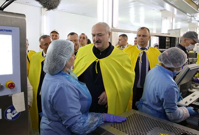На агрокомбинате для Лукашенко провели экскурсию и рассказали, в частности, об отменном качестве производимых здесь пельменей. Руководитель страны традиционно перевел фокус внимания на себя.