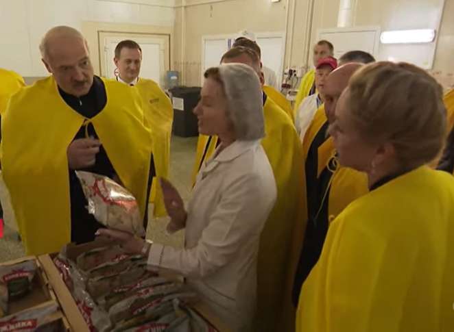 Во время экскурсии Лукашенко подвели к работнице, которая заявила, что весь коллектив переживает за него и желает ему остаться у власти. Выглядело это как заготовка. Слез на глазах работницы не было.
