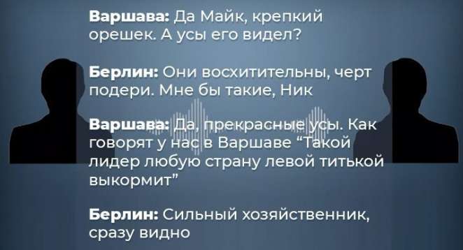 4 сентября приближенный к Лукашенко телеграм-канал «Пул Первого» опубликовал аудиозапись якобы перехваченного разговора между Варшавой и Берлином, между «Ником» и «Майком». Беседа якобы может подтверждать, что российский оппозиционер Алексей Навальный не был отравлен властями России, а дело сфабриковано, чтобы отомстить Путину за вмешательство в дела Беларуси.