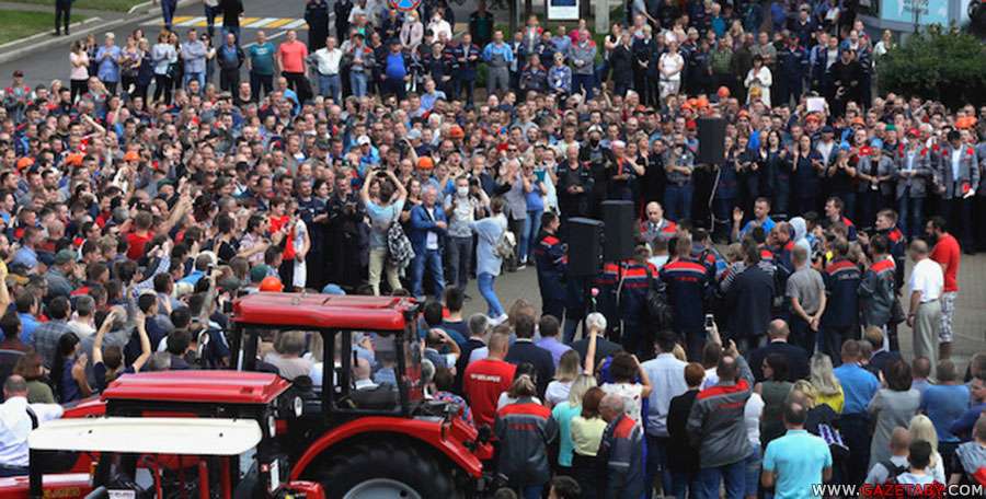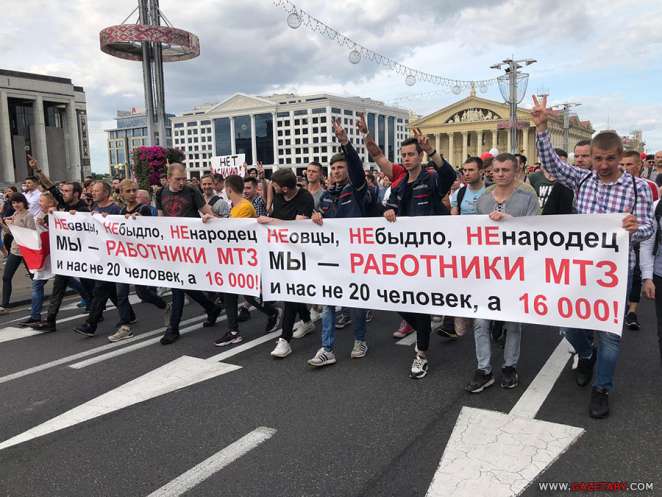 Когда после президентских выборов выяснился масштаб фальсификаций и уровень насилия со стороны власти и силовиков начались волнения на предприятиях по всей стране. В пятницу, 14 августа, работники МТЗ устроили забастовку и вышли на мирную акцию солидарности в центр Минска.